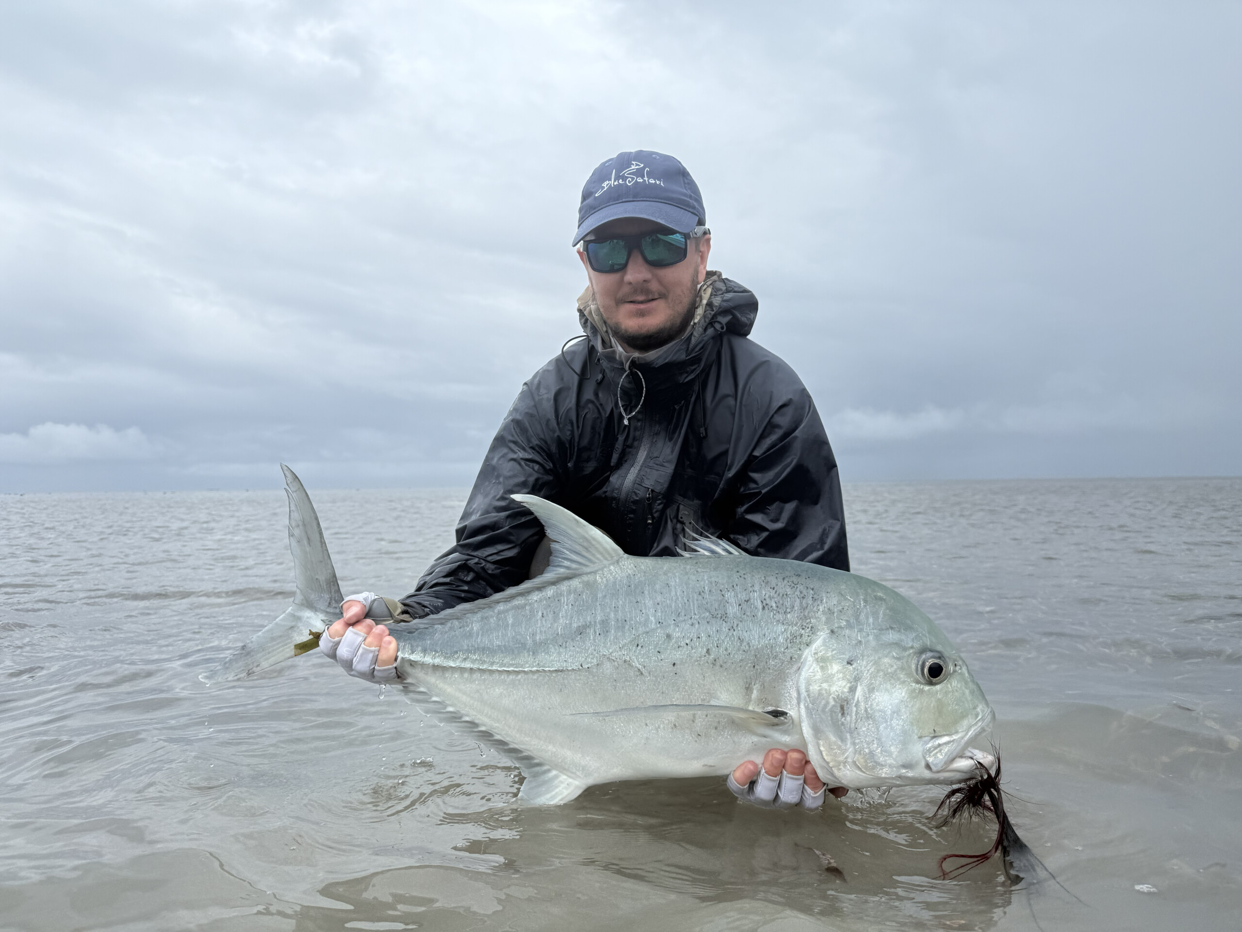 With GTs scarce, anglers shifted focus to some of Alphonse’s more unusual and rewarding species. David, a well-known returning guest, targeted batfish and succeeded in landing two, both on a bluebottle fly, fast becoming a special species to tick off and part of the main target species here on Alphonse. The permit action was equally impressive, with Vladimir landed a stunning 49 cm Indo-pacific permit tailing behind a porcupine ray on Bijoutier. His son Alexander followed in his footsteps during a quick afternoon session around Alphonse, landing his very first permit.